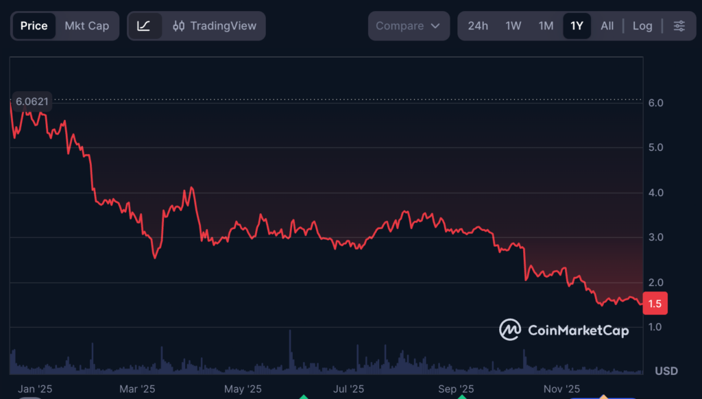 At the time of reporting, TON was valued at $1.52, down roughly 70% year to date.