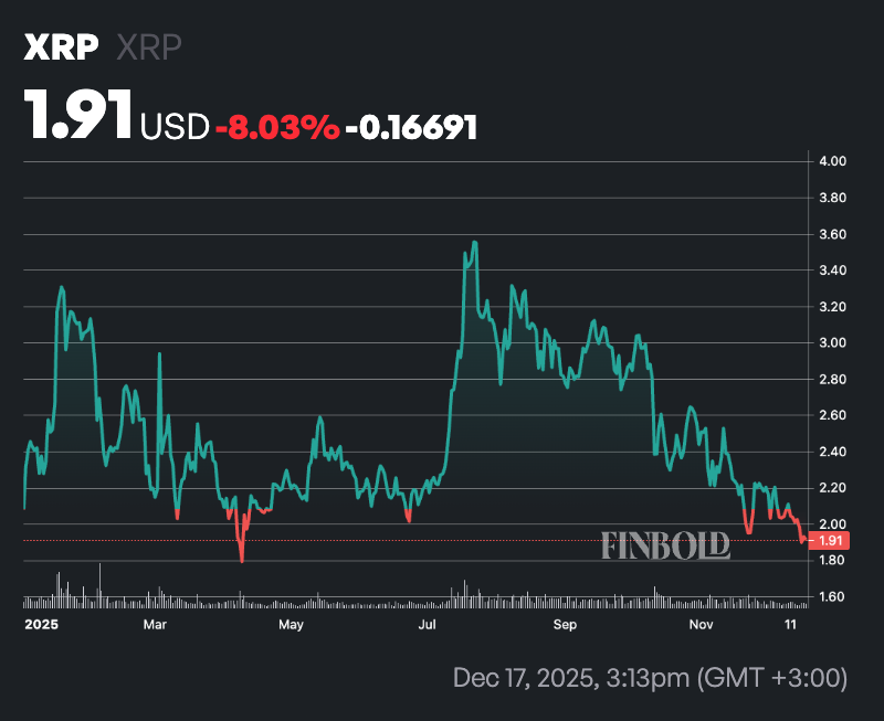 Despite this, much of XRP’s 2025 gains have been erased by the recent downturn, with the asset trading at $1.91 as of press time, down 8% year to date.