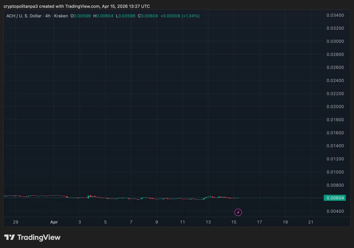 - By April 3, ACH was trading around $0.0060β0.0064, representing a decline of roughly 15β20% over the period, closing the month near its lowest levels since launch, with the overall trend remaining firmly bearish throughout.