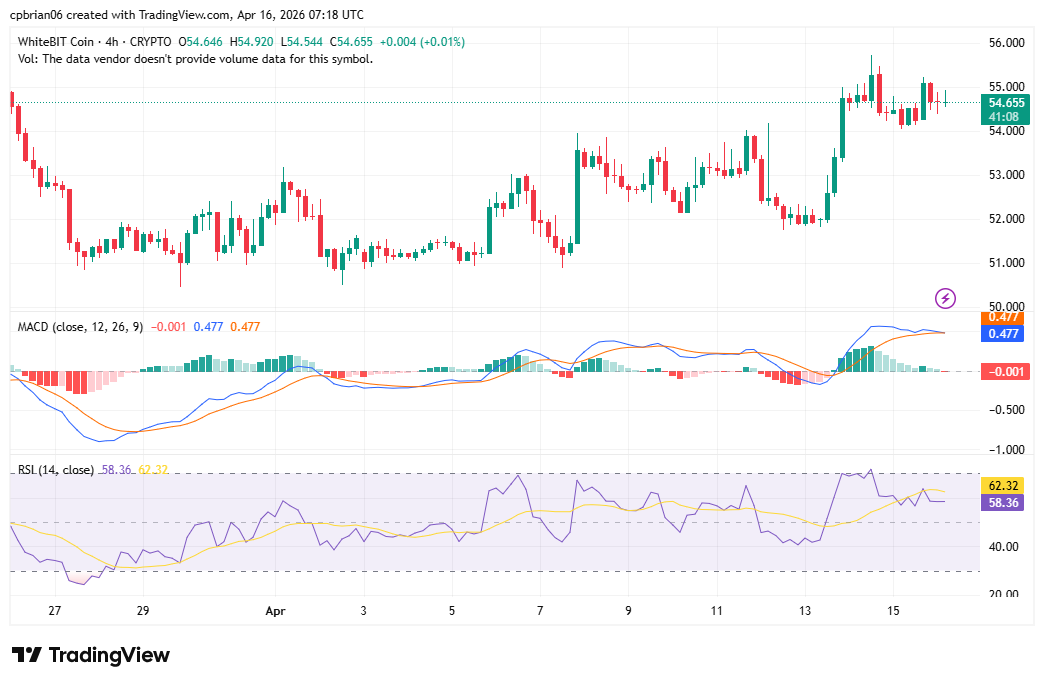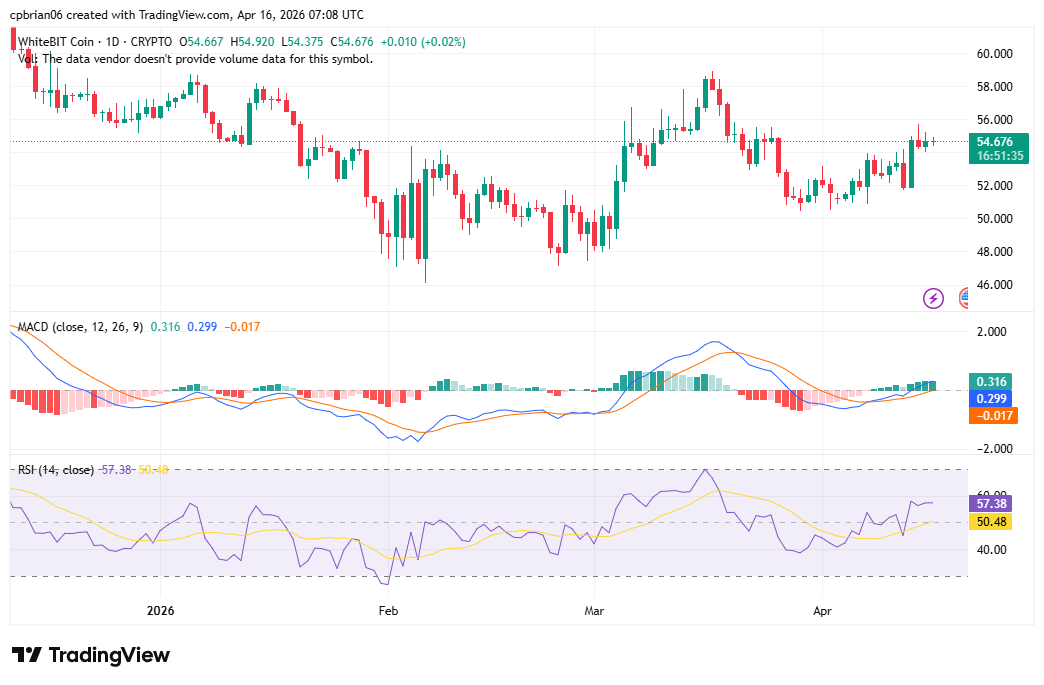 WhiteBIT Coin is up 1.07% over the last 24 hours, in line with a broader market recovery during the same period. WBT slightly underperformed the broader market while showing strong correlation with Bitcoin, which rose 1.59%. Zoomed out, WBT is pushing higher after bouncing off support levels at $50.40. With rising buying volume and market developments, traders are leaning risk-tolerant, pushing WBT toward the $58.50 resistance zone.