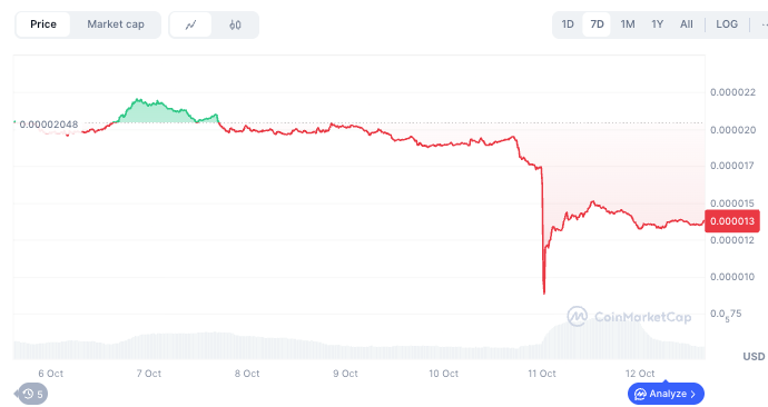 At press time, BONK was valued at $0.00001373 down over 5% in the past day while on the weekly timeline, the token has crashed 32%.
