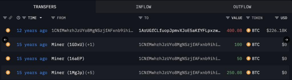 The 400.08 $BTC was received from miners 15 years ago.https://t.co/aem7WhbkOu pic.twitter.com/3m4XSBNXFO