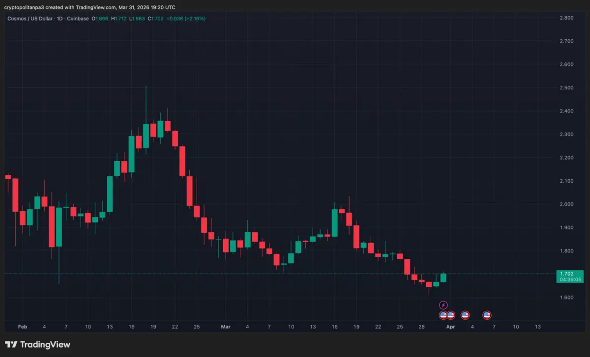 - After peaking later in February near $2.36 on February 20 and $2.31 on February 21, ATOM trended lower into March, trading around $1.80 on March 1, $1.88 on March 4, and about $1.73 to $1.74 on March 8 to March 9, 2026.Â