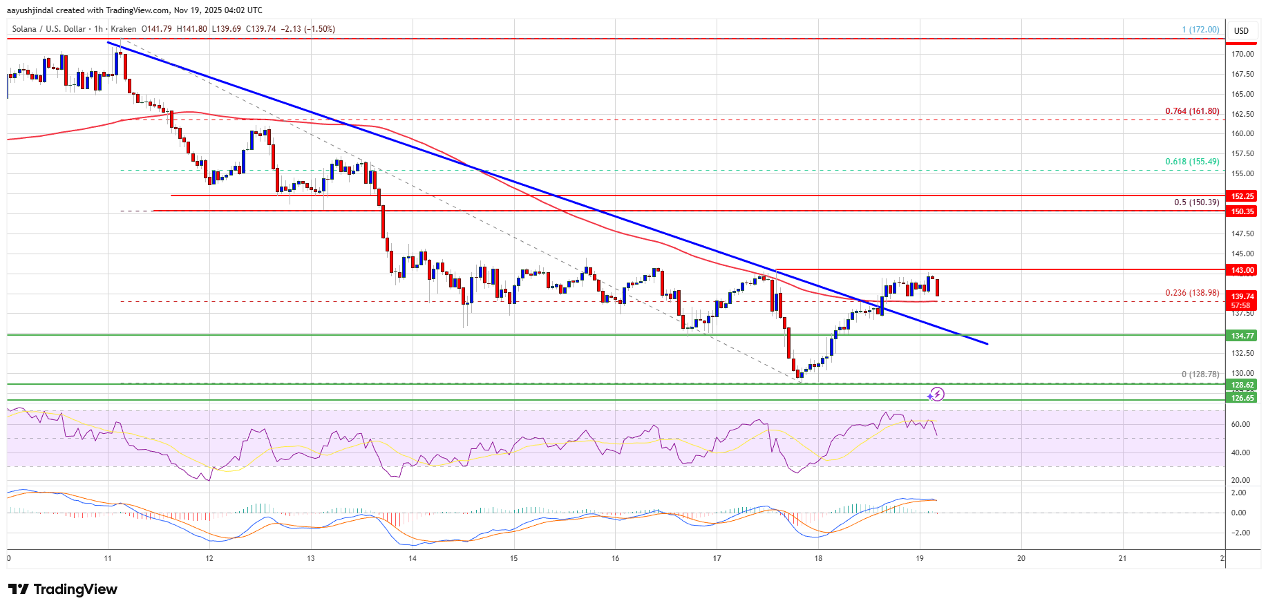 Solana started a recovery wave from the $128 zone. SOL price is now consolidating and faces hurdles near the $142 zone.