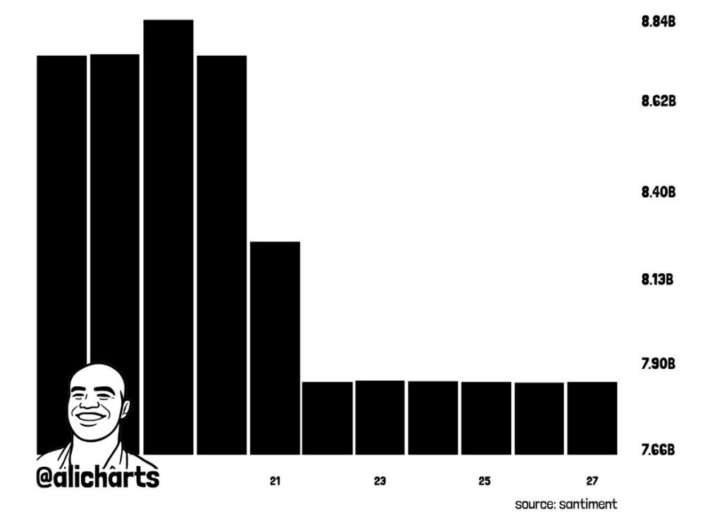 The main reason why XRP price has fallen this week is due to notable selling pressure from whale investors. Over the past week, whales with account balances of 1-10 million tokens reduced their holdings by 1.1 billion units, valued at about $1.518 billion at press time, according to data from Santiment shared by Ali Martinez.