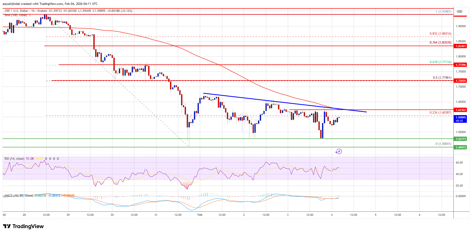 XRP price extended losses and traded below $1.5320. The price is now attempting to recover but faces hurdles near $1.6250 and $1.650.